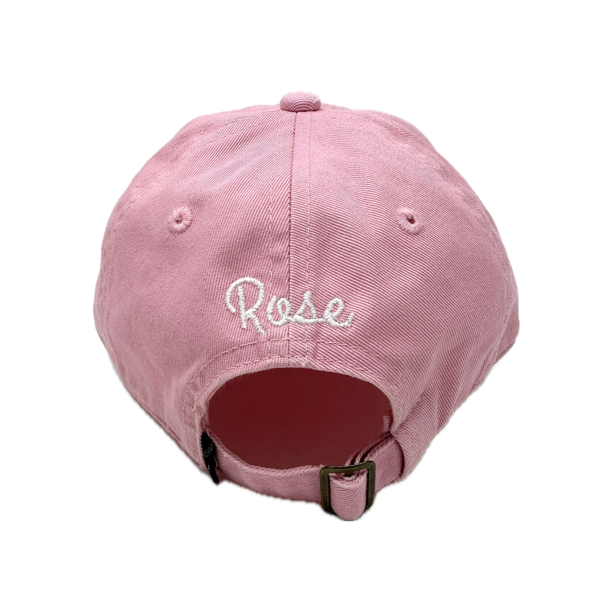 - Name on back of hat is white in script font.